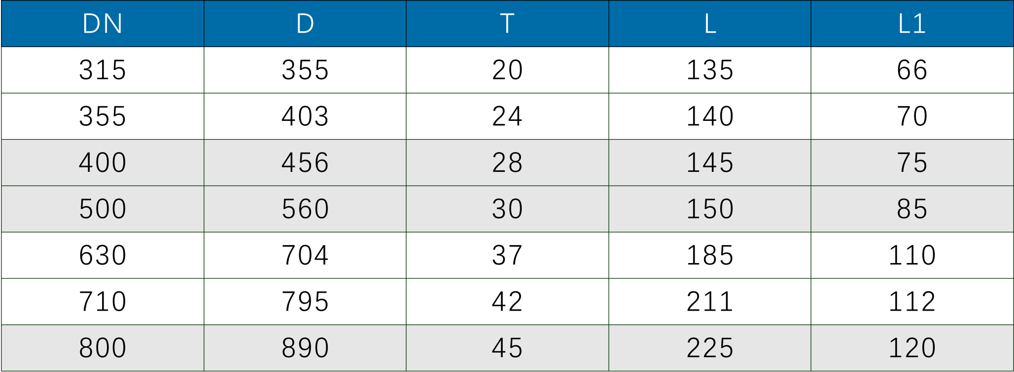 FX Series electrofusion 90° elbows are made of PE100 high-density polyethylene raw material, with a size range from 63 mm to 315 mm and a pressure rating of PN16.